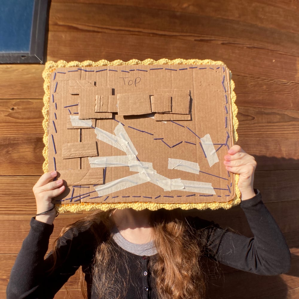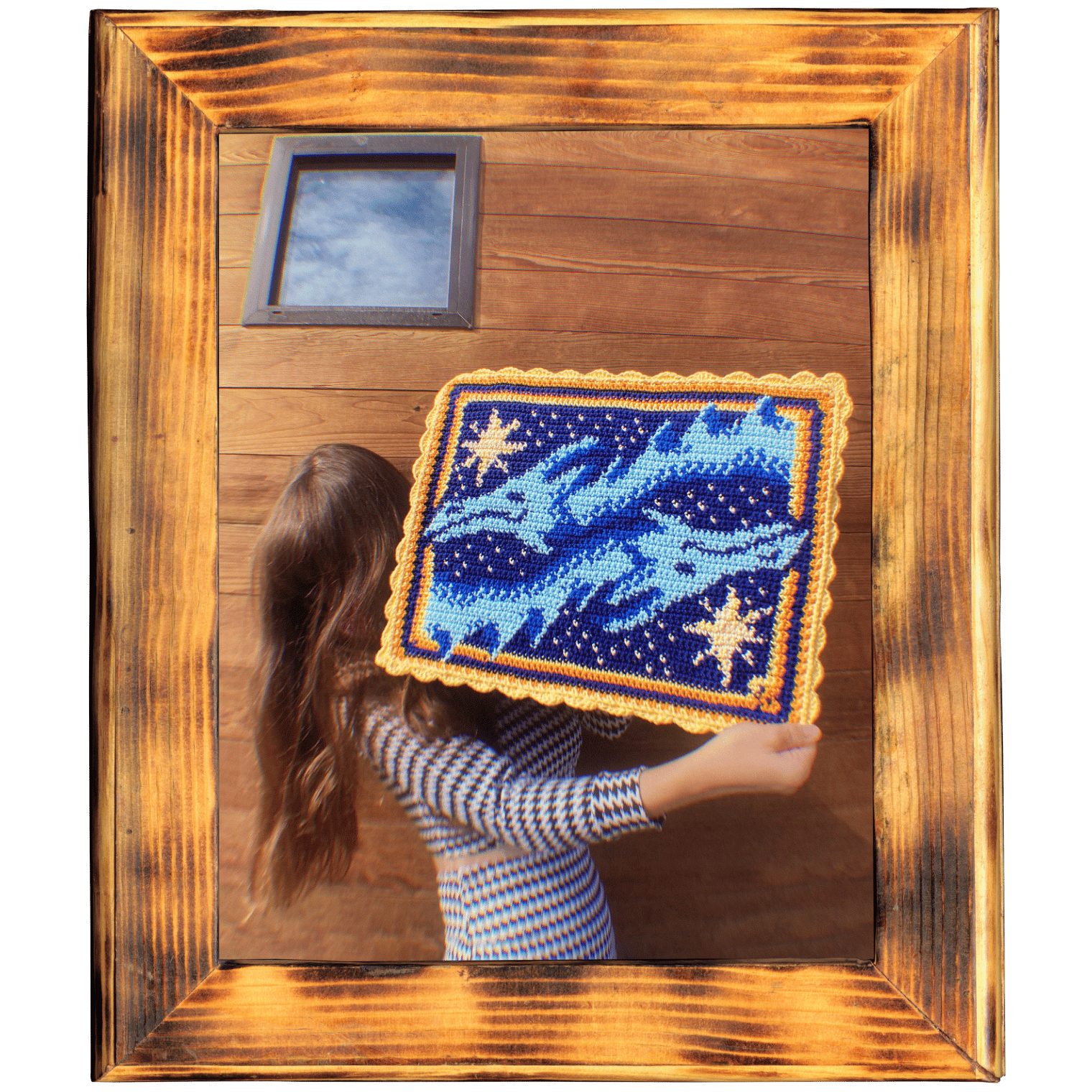stats: 18" (w) x 14" (h), made with 100% cotton and cardboard backing